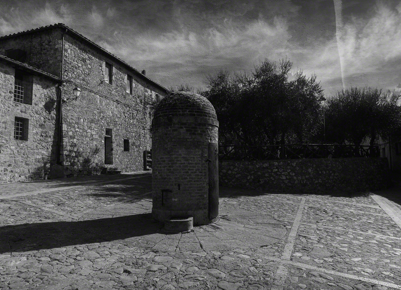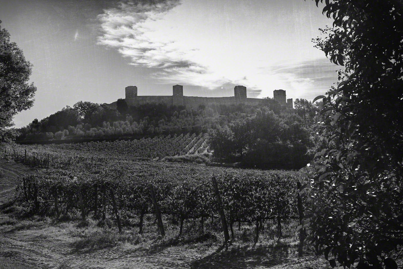 Monteriggioni is a medieval walled town, located on a natural hillock, built by the Sienese in 1214–19 as a front line defensive fortification in their wars against Florence, by assuming command of the Via Cassia running through the Val d’Elsa and Val Staggia to the west. It withstood many attacks from both the Florentines and the forces of the Bishop of Volterra.